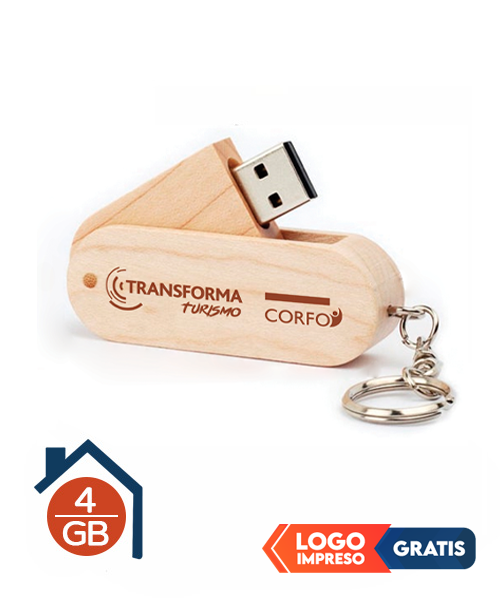 Pendrive giratorio de madera publicitario. USB de madera permite grabar el logo corporativo d tu proyecto o empresa, . Totalmente fabricado en materiales naturales, lo que refuerza la asociación de su marca de empresa a valores ecológicos. Original formato de carcasa, con accionamiento giratorio tipo navaja, que recoge el cuerpo USB y lo protege, pasando desapercibido como memoria USB.